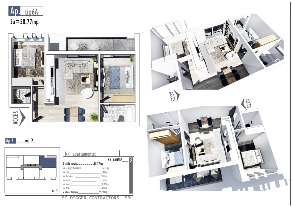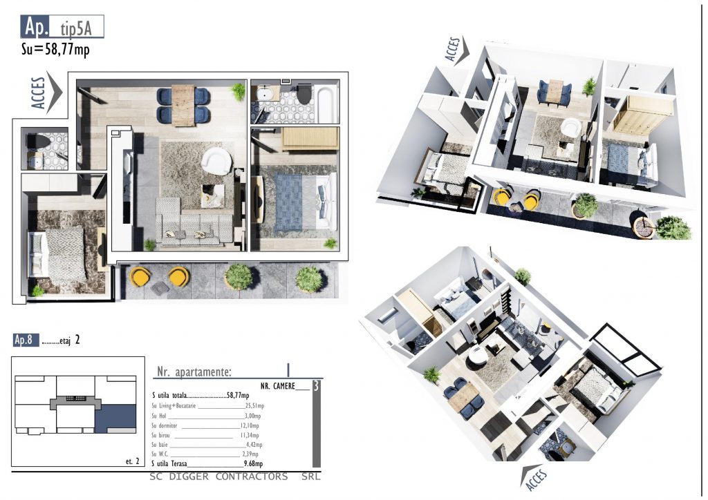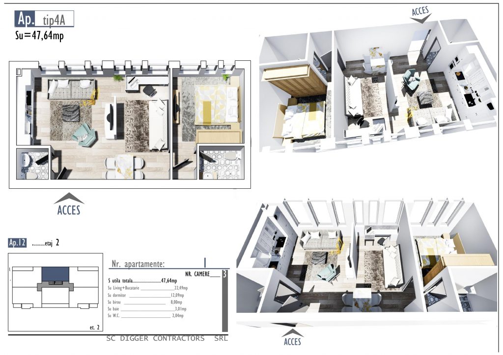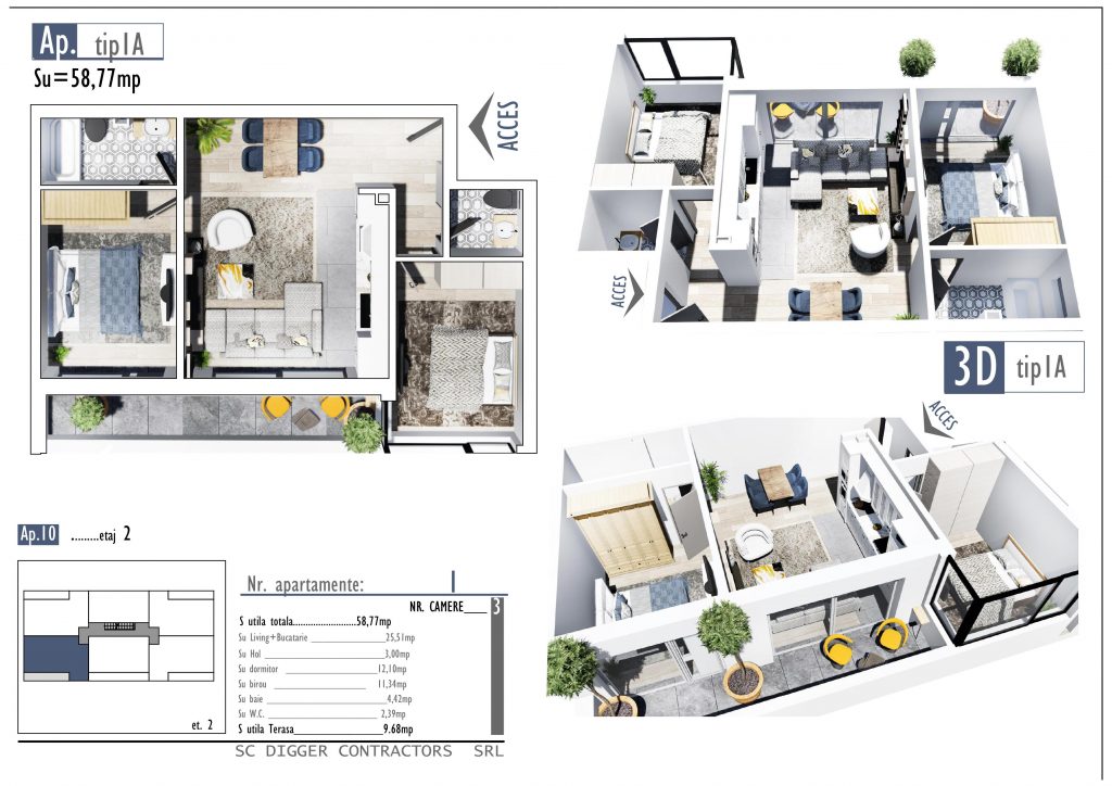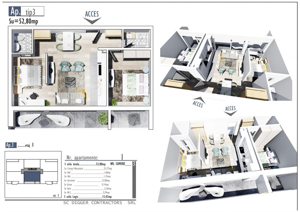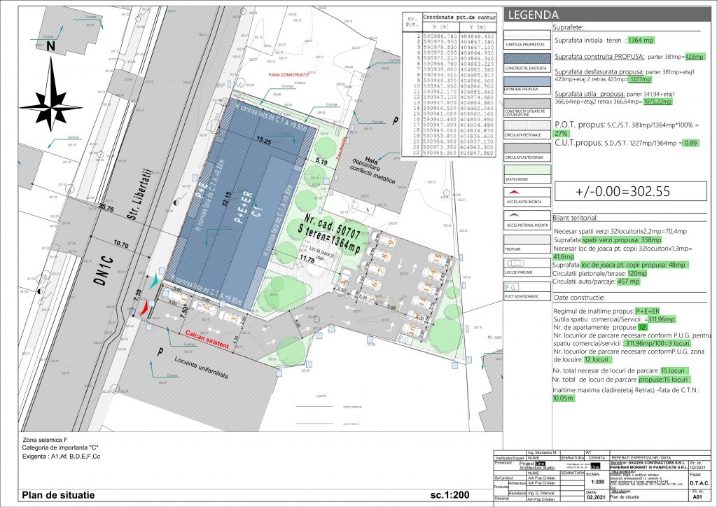 €1000–€1300 Teren cu suprafata de 1364 mp, autorizatie de construire nr. 340/30.08.2021 de către Primaria Comunei Apahida Imobil Mixt cu regim de inaltime P+E+Er