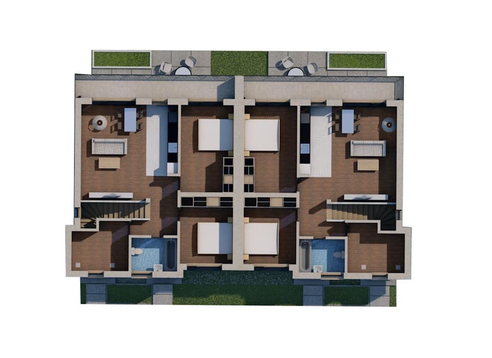 Imobilele (2 case duplex si 2 imobile tripex) vor avea o suprafata de aproximativ 2000 de mp, vor fi edificate pe structura de beton, inchideri din caramida si acoperis tip terasa hidroizolata. Daca vrei sa afli mai multe despre raportul calitate pret propus de proiectul nostru imobiliar, te asteptam cu mai multe informatii printr-un e-mail sau telefonic.