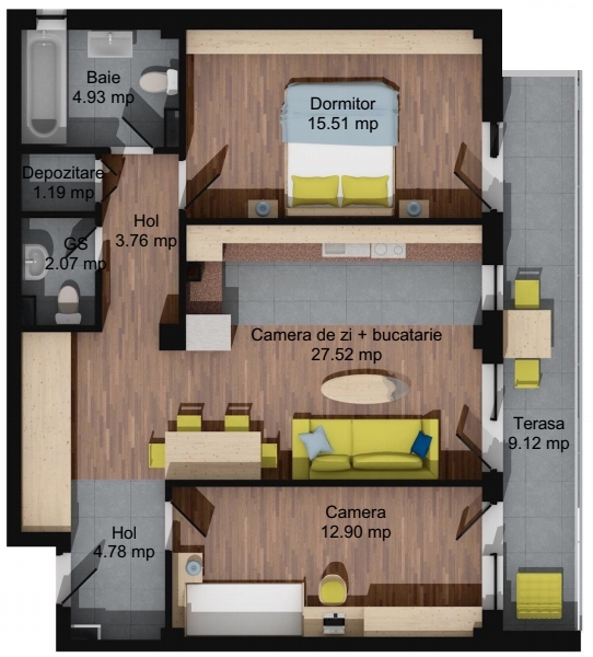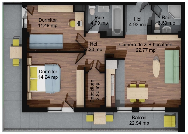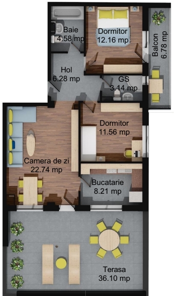 iluminat stradal, balcoane si terase generoase, spatiu verde, In imediata apropiere a ansamblului se regasesc magazine alimentare, farmacii, restaurante
