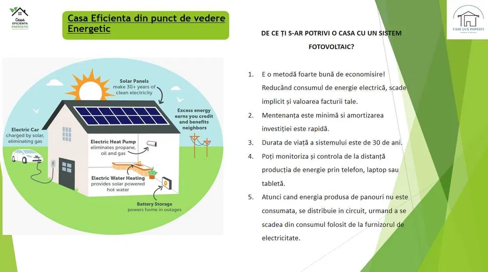 Casa individuala 120 mp cu teren drept, stabil 600 mp, panorama superba!~ 8 km de Cluj-Napoca Propunem spre vanzare 2 case rămase disponibile dintr-un număr de 15 case care se construiesc dintr-un ansamblu rezidential in loc. Popesti, com. Baciu. - Suprafața utilă a casei: 120 mp - Suprafața construită a casei: 165 mp - Suprafață de teren între 500 mp și 700 mp. - Terasă mare - Balcon pe toată întinderea casei - Finisaje calitative - Posibilitatea de avea 3 parcări, și eventual o copertină auto generoasă Zona este foarte liniștită, teren drept, luminos, priveliște frumoasă, aproape de stația de autobuz, drum de acces de 8 metri cu acces direct din drumul asfaltat. Beneficiază de gaz,curent, apa, fibra, si servicii publice. Locaţia se afla la 8 km faţă de Parcul Central Cluj-Napoca, iar timpul estimat este de aproximativ 15 minute cu maşina. Casele sunt situate in com. Baciu, loc. Popesti, zona fara aglomeratie si cu 2 drumuri de acces catre Cluj-Napoca. Casa este situată pe 2 nivele (parter și etaj) și compartimentarea ei este sub următoarea formă: Parter: - Birou/Cameră, - Bucătărie, - Camara, - Loc pentru luat masa, - Living, - Baie, - Casa scarii, - Depozit, - Hol intrare terasa Etaj: - Un dormitor matrimonial de 17 mp - O baie aferentă destinată dormitorului matrimonial - Un dressing - Două dormitoare de 11 mp - O baie aferentă - Hol intrare - Balcon - Acces pod Casa se vinde la stadiu semifinisat cu materiale de calitate deosebita, Imobilul se poate preda şi cu modificări la cererea clientului. Prețul este de 185.000 euro. In functie de nivelul de predare al casei si in functie de ce fel de finisaje se executa, pretul poate sa ajunga pana la 214.500 euro. In pretul maxim, va intra un sistem de Tamplarie Combinat Inovator S 9000 si Sistem Fotovoltaic ce produce energie de 3,5 Kw. Cateva caracteristici ale unui sistem de tamplarie Combinat Inovator S 9000 - De la început, obiectivul acestui sistem a fost reprezentat de atingerea unui coeficient Uf - 0,92 W/m²K pentru termoizolare în combinația standard cu oțel și astfel, compatibilitatea cu locuințe pasive. - Îmbunătăţirea izolaţiei termice este posibilă prin folosirea tehnologiei cu spumă IKD®. - Adecvat pentru montarea de geamuri triple funcționale cu grosimea maximă de 52 mm - Tehnică inteligentă de etanșare cu până la trei planuri de etanșare. - Izolare termică și fonică foarte bună datorită structurii cu 6 camere și adâncimii mari de construcție a ramelor oarbe și cercevelelor. - Optimizat pentru utilizarea STV®, pentru lipirea uscată a geamului pe întreaga suprafață a marginii răsfrânte a cercevelei. - Lățime vizibilă îngustă și înclinație de 15° pentru un aspect cât mai plăcut. Cateva caracteristici ale unui sistem fotovoltaic: - E o metodă foarte bună de economisire! Reducând consumul de energie electrică, scade implicit și valoarea facturii tale. - Mentenanța este minimă si amortizarea investiției este rapidă. - Durata de viață a sistemului este de 30 de ani. - Poți monitoriza și controla de la distanță producția de energie prin telefon, laptop sau tabletă. - Atunci cand energia produsa de panouri nu este consumata, se distribuie in circuit, urmand a se scadea din consumul folosit de la furnizorul de electricitate. Mai putem oferi si alte modele de case: case de 153 mp, pret intre 195.000 euro - 255.500 euro, in functie de nivelul de finisaje dorit case personalizate, teren inclus de 600 mp ~atat ca proiect cat si ca executie~ pret de la 215.050 euro Pentru a identifica locația exactă a imobilului, accesați aplicația Google Maps, iar în căsuța de căutare, introduceți coordonatele locației: 46.825420, 23.525947 Fara Comisioane! Direct de la proprietar! Costuri reduse privind utilitatile datorita izolatiei si materialelor de calitate superioara! Merita vizitat!