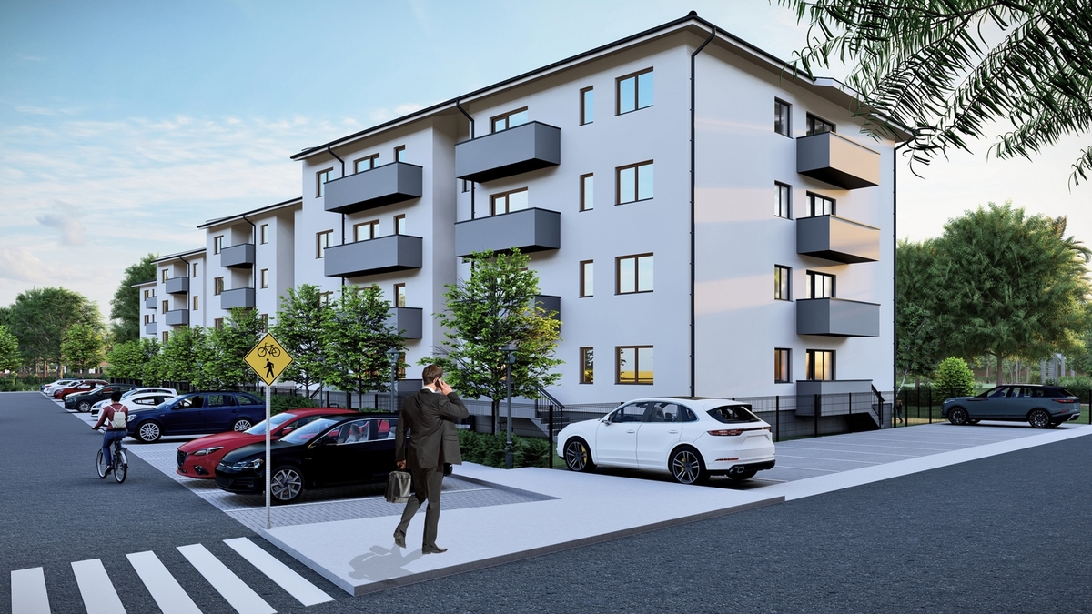 Detalii de amplasare Ansamblul locativ „Exela Concept – Ion Ratiu Sibiu” se află localizat în apropierea cartierului Vasile Aaron și se găsește pe strada Ion Rațiu, în zona comunei Șelimbăr, județul Sibiu. La doar 800 de metri față de locuințele noi se află centrul comercial „Shopping City Sibiu”, sunt magazinele Leroy Merlin, JYSK și Decathlon, funcționează hipermarketurile Carrefour și Auchan, sunt supermarketurile LIDL, Kaufland și se află diverse magazine, bănci, farmacii, cafenele și restaurante. În proximitatea blocurilor locative circulă autobuze și este de parcurs o distanță de numai 3,5 km până în centrul orașului Sibiu, sunt 4 km până la Gara din Sibiu și aproximativ 8 km până la Aeroportul Internațional din Sibiu. Prezentarea proiectului locativ Ansamblul rezidențial „Exela Concept – Ion Ratiu Sibiu” se compune din 4 clădiri de apartamente, ce sunt proiectate cu câte un Parter și 3 Etaje. Toate imobilele sunt responsabil construite din cadre din beton armat și au toți pereții zidiți din cărămidă și imobilele sunt termic izolate pe partea exterioară și finisate cu tencuială decorativă de exterior. Tâmplăria exterioară instalată la blocurile locative dispune de profil PVC cu 5 camere termice și are două rânduri de geam termopan Qfort. Toate spațiile comune interioare din blocurile locative sunt finisate și sunt placate cu gresie, scările au instalate balustrade din inox și pereții sunt zugrăviți în culoarea albă. La intrare în fiecare bloc rezidențial sunt instalate interfoane și accesul este controlat. În curtea ansamblului locativ sunt plantate spații verzi, există amenajate trotuare și alei pietonale. Inclus în prețul apartamentului achiziționat este și câte un loc de parcare. Toate parcările din complexul rezidențial „Exela Concept – Ion Ratiu Sibiu” sunt organizate supraterane, sunt delimitate și se află amenajate pe spațiile pavate din curte. Drumul de acces către compleul locativ este asfaltat și nocturn iluminat. Despre apartamente În blocul rezidențial locativ „Exela Concept – Ion Ratiu Sibiu” sunt concepute 72 de unități locative, toate au scheme ergonomice cu 2 și 3 camere, ce sunt decomandat compartimentate. Locuințele cu 2 camere sunt proiectate cu suprafața de la 40 mp până la 55 mp, iar suprafața apartamentelor cu 3 camere este de 67 mp. Apartamentele au băi natural ventilate și dispun de ferestre în camerele de baie. Se vând apartamentele finisate la cheie cu materiale calitative și modelele finisajelor sunt oferite la alegerea cumpărătorilor. Pentru finisarea camerelor de baie și a bucătăriilor sunt alese plăcile de gresie și faianță, ce sunt oferite la alegere dintr-o gamă largă de modele moderne și plăcile de parchet laminat sunt de calitate înaltă. Toate tavanele și toți pereții pe partea interioară sunt prelucrați, nivelați, tencuiți cu tencuieli de la Ceresit și finisați cu vopsea lavabilă de culoare albă. Ușile interioare instalate în apartamente sunt alese de la firma Naturen. iar la intrare în fiecare apartament sunt instalate uși de acces din metal. Sistemul de încălzire este autonom cu centrale termice proprii de marca Bosh (cu funcționare în condensații) pentru fiecare unitate locativă și instalațiile sistemului de încălzire sunt cu distribuitoare, iar caloriferele instalate sunt din oțel. Camerele de baie și toate bucătăriile au complet realizat sistemul sanitar cu racordări la obiectele sanitare. Instalațiile de gaz sunt conduse până la bucătării și conectate. Sistemul de electricitate este realizat (trifazic) și conține tablou electric general plus sunt montate toate prizele și întrerupătoarele de la firma Legrand. Sunt prize, instalații și cablaj pentru TV, telefon și internet. Blocurile de apartamente sunt racordate la utilități, la țeava de gaz, sunt asigurate cu electricitate, alimentate cu apă curentă și branșate la sistemul de canalizare. Și este contorizare individuală pentru fiecare locuință, cu apometre, contoare de gaz și de electricitate dotate. Pentru achiziționarea locuințelor sunt acceptate și creditele bancare și pentru mai multe informații utile și contactele Dezvoltatorului vă invităm să treceți de pe site-ul nostru direct pe site-ul complexului rezidențial „Exela Concept – Ion Ratiu Sibiu”.