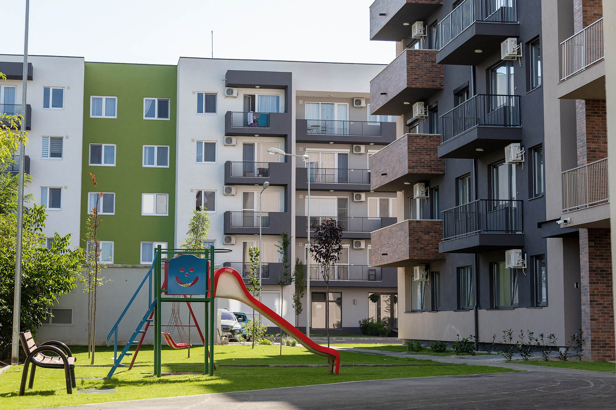 locuri de joacă pentru copii, piste pentru biciclete, supermarket
