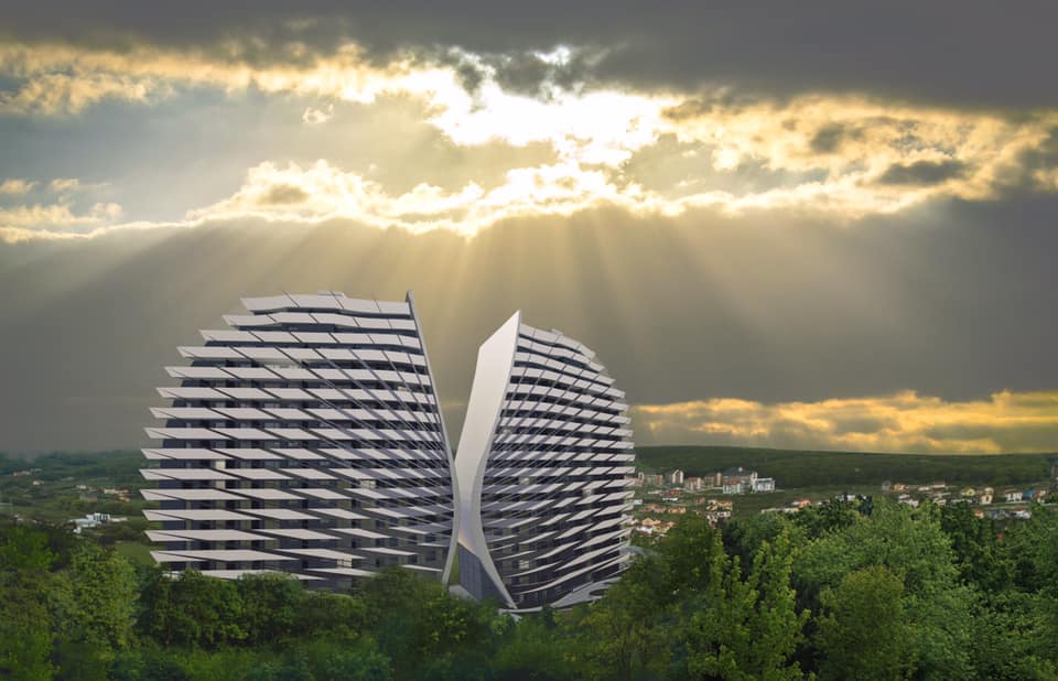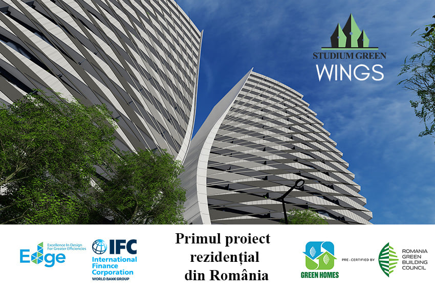 Disponibilitate: mai sunt apartamente disponibile cu 1,2,3 camere Unde se află? Ansamblul rezidențial „Wings” se află localizat în cartierul Zorilor, pe strada Frunzișului, la numărul 88A în partea de Vest al orașului Cluj-Napoca. Complexul locativ se învecinează cu: Liceul Waldorf, cu supermarket-ul Lidl, în apropiere de bloc sunt magazine, câteva cafenele, este o pizzerie și nu departe se află stațiile de transport în public, de asemenea în acest cartier se găsește un centru medical, este centru diagnostic și sunt instituții de învățământ. De la complexul rezidențial „Wings” până în centrul orașului Cluj–Napoca se ajunge în maxim 10 minute. Cum este amenajat complexul? Ansamblul rezidențial „Wings” este cel mai remarcabil proiect imobiliar din Transilvania, cu adevărat cel mai atrăgător și impresionant complex locativ. Complexul este prezentat cu două clădiri de apartamente, construite cu un design foarte spectaculos și irepetabil, complexul imobiliar are 2 aripi (blocuri) și locuințele la fel sunt structurate pe două laturi = 2 tronsoane locative. Sistemul constructiv al imobilului este realizat pe fundații pe radier general și cu diafragme din beton armat. Închiderile exterioare și pereții interiori sunt efectuați din diafragme și cărămidă la zidărie. Grosimea sistemului de termoizolație este de 15 cm. Fațada clădirii locative este acoperită cu tencuială decorativă. Ferestrele montate sunt din profil PVC și au geam tripan. Complexul rezidențial „Wings” beneficiază de serviciul de administrare al proprietăților. În trei nivele subterane sunt prevăzute locurile de parcare, iar la suprateran se vor amplasa boxe de depozitare. În incinta complexului este proiectată o grădiniță pentru copiii, sunt multe zone verzi și spații amenajate pentru joaca copilașilor. Care sunt detaliile apartamentelor? Complexul rezidențial „Wings” însumează un număr total de 228 de unități locative de clasa energetică „A”, toate cu balcoane superbe. Imobilele găzduiesc apartamente cu o cameră, apartamente cu 2, 3 și 4 camere și apartamente de tip - duplex cu scară în interior. Suprafața utilă a apartamentelor cu o cameră este cuprinsă între 41 mp și 50 mp. Apartamentele cu 2 camere sunt prezentate în mai multe tipuri de schițe și toate acestea dispun de terase generoase cu suprafața cuprinsă între 16 mp și 21 mp, iar suprafața locuințelor este de la 51 mp până la 62 mp. Apartamentele de tip duplex cu 3 și cu 4 camere dispun de câte două terase și de câte două grupuri sanitare și pot avea suprafețele de la 140 mp utili. Locuințele se predau rezidenților în versiune – semi finisate, la finisarea pardoselilor de la balcoane sunt folosite doar materiale naturale. Absolut toate apartamentele oferă locatarilor o panoramă fascinantă asupra vecinătăților. Dezvoltatorul Ansamblul rezidențial „Wings” este compania „Studium Green”, care se mândrește cu proiectele sale finalizate și are lăsate în urmă mai mult de 1500 de apartamente și peste 7500 de spații comerciale și de birouri cu succes construite, precum și 4500 de acoperișuri verzi amenajate. Compania „Studium Green” are o experiență de 15 ani în domeniul construcțiilor și folosește la construcția proiectului imobiliar „Wings” materiale și tehnologii doar care corespund mediului înconjurător. Compania de construcții oferă astfel de modalități de plată: plata din resurse proprii, sau prin credite ipotecare sau credite imobiliare. Persoanele interesate de locuințele extraordinare din ansamblul locativ „Wings” sunt invitate pe site-ul companiei de construcții „Studium Green”, pentru a afla despre toate facilitările complexului, schemele, pozele depline, contacte, plați și alte informații utile.