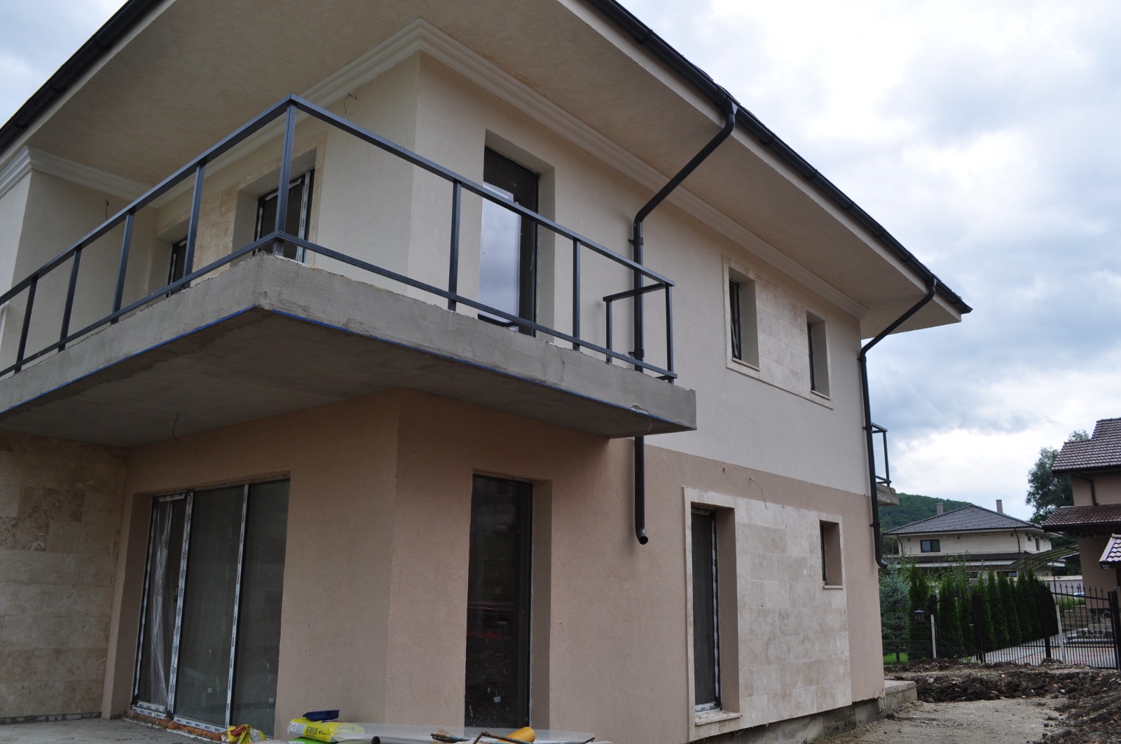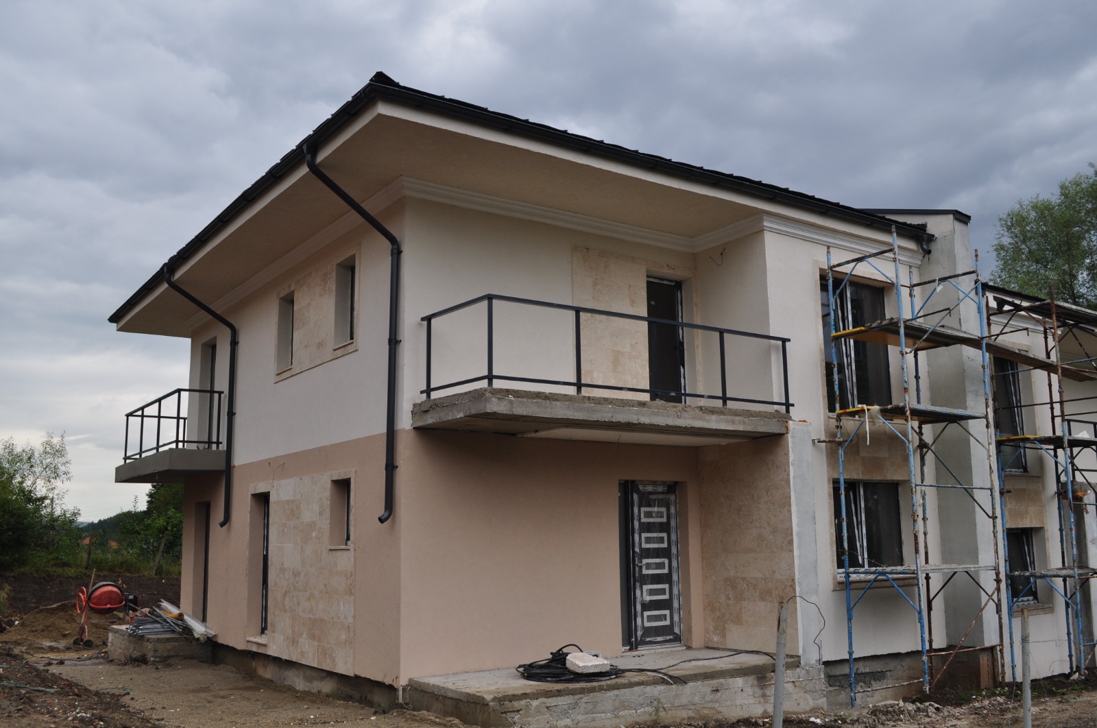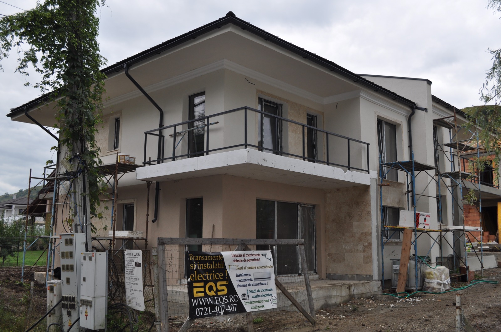 Suprafata utila : 120 mp, suprafata construita: 200 mp/casa, avand 2 terase la parter si balcoane generoase la etaj. Teren : 308 mp total pentru fiecare casa, 208 mp teren liber fara amprenta casei. Locatie perfecta: Str. Valea Garbaului nr. 205, Floresti, zona restaurantului Roata Faget. Accesul cel mai rapid se face prin Faget, drum asfaltat. A doua varianta de acces este pe Str. Valea Garbaului. Zona cu mult spatiu verde, vecinitati construite (numai case), exact la limita cadastrala dintre Cluj-Napoca si Floresti. Compartimentare foarte eficienta: Parter: hol, living, bucatarie (se poate inchide cu sticla sau perete), camara, baie, camera (birou), 2 terase. Etaj: hol, baie, 3 dormitoare, dintre care dormitorul matrimonial are baie separata (care se poate amenaja ca baie sau dressing, la alegerea clientului), 2 balcoane mari, fiecare dormitor avand acces la balcon. Calitate premium: tamplarie Rehau cu sticla tripla, incalzire in pardoseala pe toata suprafata, izolatie exterioara cu polistiren de 10 cm, suprafete placate cu travertin pe fatade, izolatie cu celuloza a podului, acoperis cu tabla faltuita Lambda import Polonia, sticla securizata la balcoane etc. Sunt practic case unifamiliale cuplate, au pereti individuali si intre ei este polistiren extrudat, pentru comfort fonic sporit. Utilitati: apa, curent, gaz, fosa septica individuala. Interiorul se preda la stadiul semifinisat: incalzire in pardoseala, sapa, pereti tencuiti si gletuiti, utilitati la pozitie, instalatie electrica. Exteriorul se preda finalizat: decorativa, suprafete cu travertin pe fatade, acoperis finalizat, sistem de scurgere a apelor pluviale. Terenul se preda imprejmuit, nivelat, cu 2 locuri de parcare in curte, pavate cu dale.
