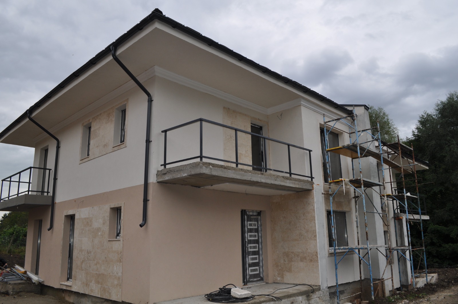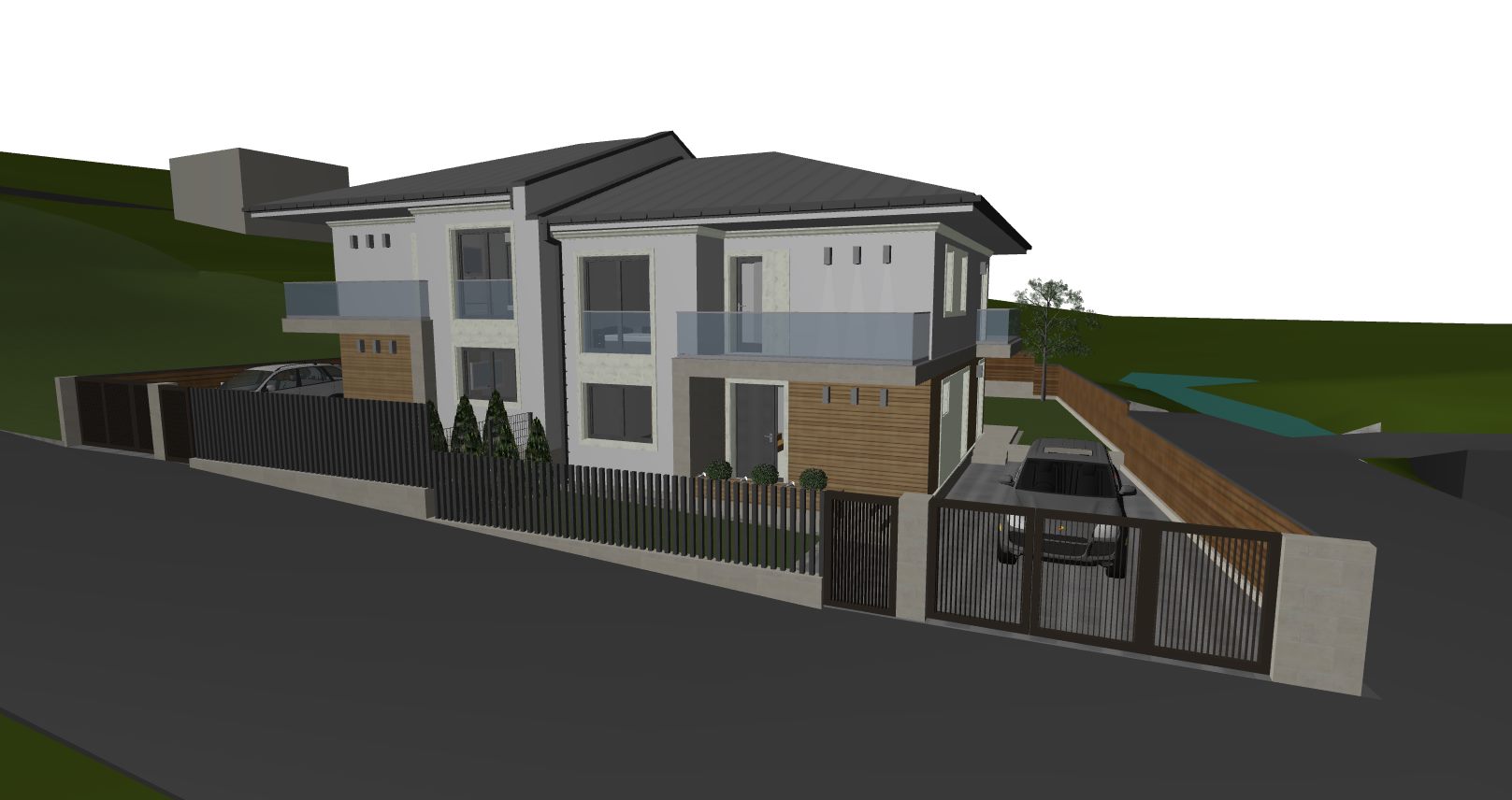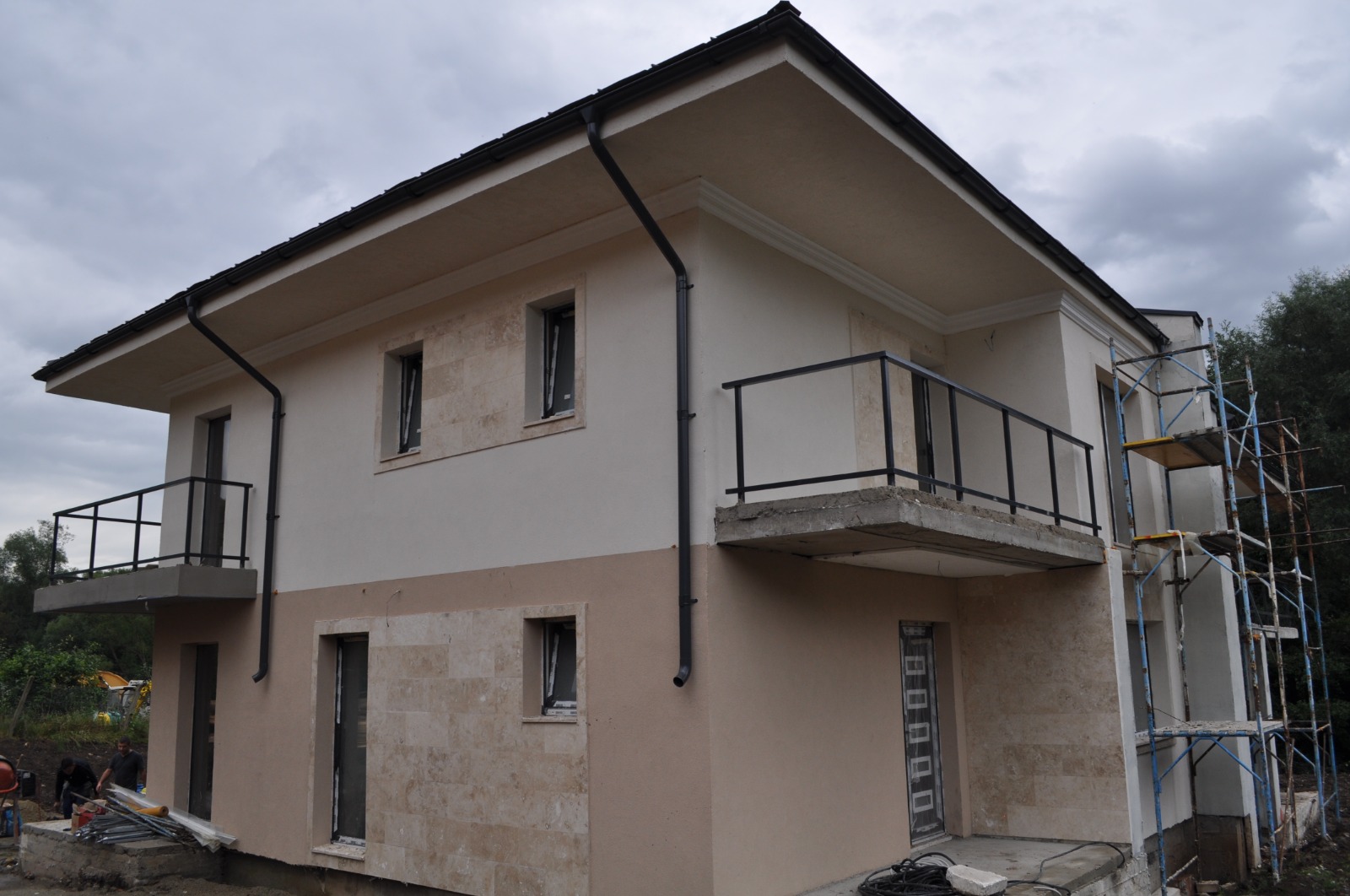 Suprafata utila : 120 mp, suprafata construita: 200 mp/casa, avand 2 terase la parter si balcoane generoase la etaj. Teren : 308 mp total pentru fiecare casa, 208 mp teren liber fara amprenta casei. Locatie perfecta: Str. Valea Garbaului nr. 205, Floresti, zona restaurantului Roata Faget. Accesul cel mai rapid se face prin Faget, drum asfaltat. A doua varianta de acces este pe Str. Valea Garbaului. Zona cu mult spatiu verde, vecinitati construite (numai case), exact la limita cadastrala dintre Cluj-Napoca si Floresti. Compartimentare foarte eficienta: Parter: hol, living, bucatarie (se poate inchide cu sticla sau perete), camara, baie, camera (birou), 2 terase. Etaj: hol, baie, 3 dormitoare, dintre care dormitorul matrimonial are baie separata (care se poate amenaja ca baie sau dressing, la alegerea clientului), 2 balcoane mari, fiecare dormitor avand acces la balcon. Calitate premium: tamplarie Rehau cu sticla tripla, incalzire in pardoseala pe toata suprafata, izolatie exterioara cu polistiren de 10 cm, suprafete placate cu travertin pe fatade, izolatie cu celuloza a podului, acoperis cu tabla faltuita Lambda import Polonia, sticla securizata la balcoane etc. Sunt practic case unifamiliale cuplate, au pereti individuali si intre ei este polistiren extrudat, pentru comfort fonic sporit. Utilitati: apa, curent, gaz, fosa septica individuala. Interiorul se preda la stadiul semifinisat: incalzire in pardoseala, sapa, pereti tencuiti si gletuiti, utilitati la pozitie, instalatie electrica. Exteriorul se preda finalizat: decorativa, suprafete cu travertin pe fatade, acoperis finalizat, sistem de scurgere a apelor pluviale. Terenul se preda imprejmuit, nivelat, cu 2 locuri de parcare in curte, pavate cu dale.