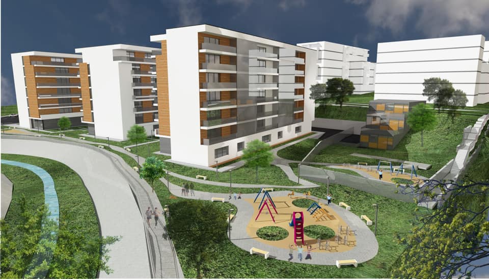 Apartamentele se vor vinde la stadiul de semifinisat. Se propune realizarea la parter de servicii, iar la etajele superioare apartamente cu 1, 2 sau 3 camere. Subsolurile vor avea destinatia de parcari auto, iar la subsolul 2 se va amenaja adapostul de protectie civila si spatii tehnice. Numarul locurilor de parcare au fost calculate conform anexei 2 din PUG actual. Pe sol se vor propune 10 locuri de parcare, iar in subsol 295 de locuri. Se propune realizarea a unor locuri de joaca pentru copii, amenajari exterioare, precum si amenajarea spatiului verde cu arbori de inaltime medie si joasa, a unor puncte gospodaresti pentru spatiul comercial si pentru locuinte.